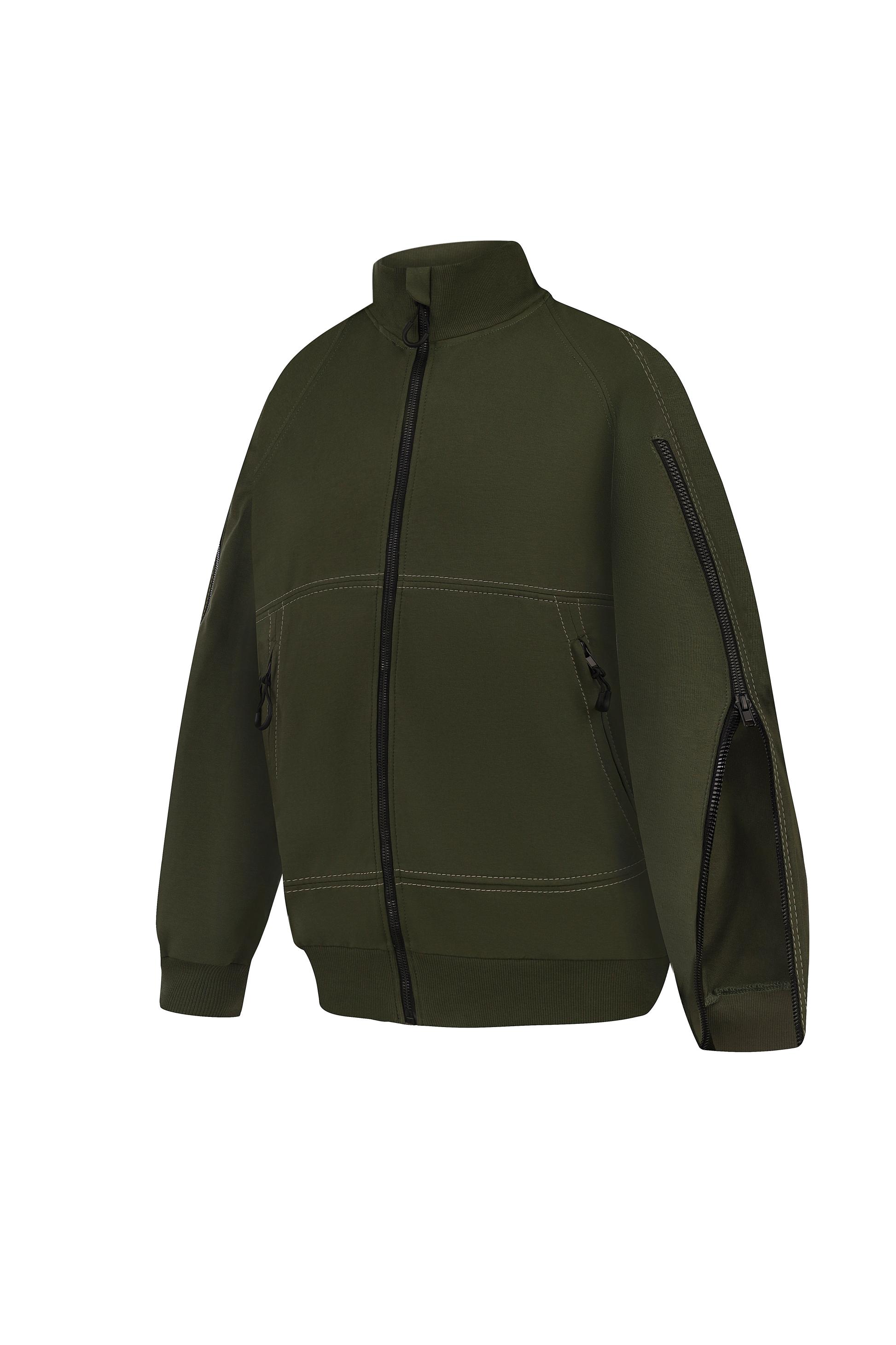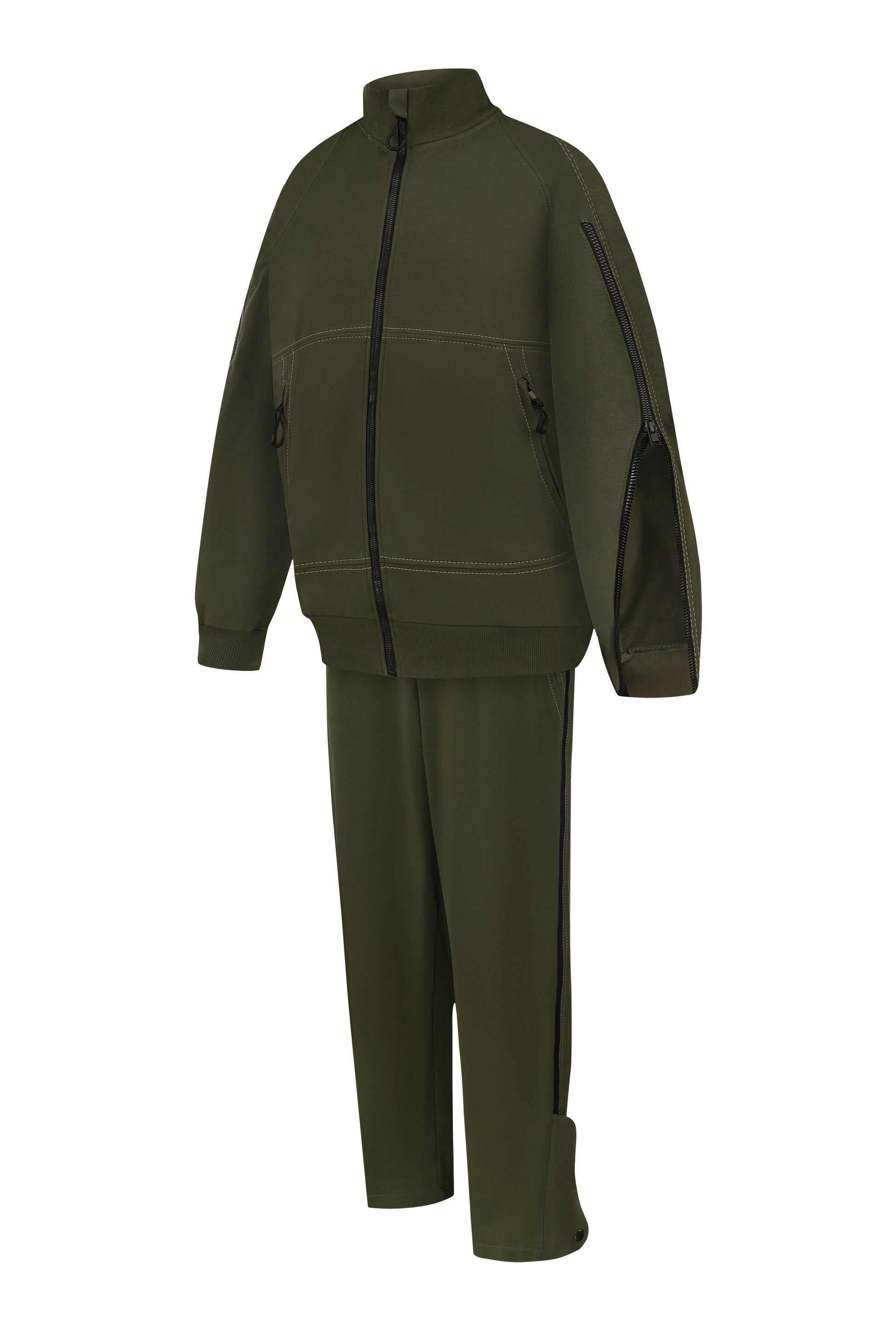 Зручний та функціональний костюм: куртка та штани із еластичної тканини, оснащений блискавками на рукавах і холошах для легкого одягання. Має кнопки на поясі та практичні кишені на блискавках.Ідеальний для щоденного використання людьми, що носять протези верхніх чи нижніх кінцівок.
